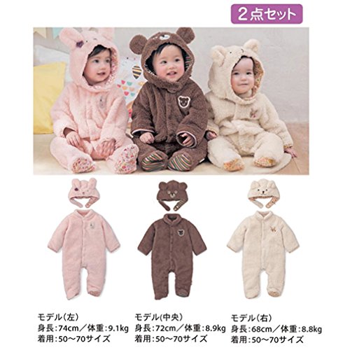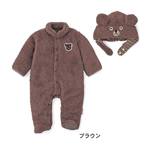 Cuteshower フリース フード付 カバーオール ベビー服 着ぐるみ 男の子 女の子 出産祝い クリスマス 年賀状 ブラウン 80