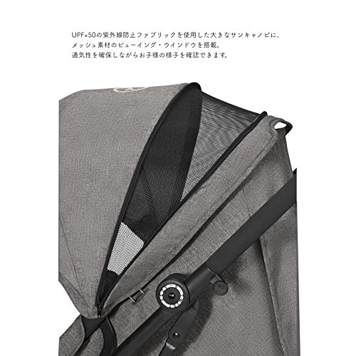 - 生後1ヶ月から使用できる両対面ベビーカー。シングルホイールとサスペンション搭載で走行性はキープしたままコンパクト設計を実現 し幅はたったの45cm。自動改札もエレベーターもラクラク操作。