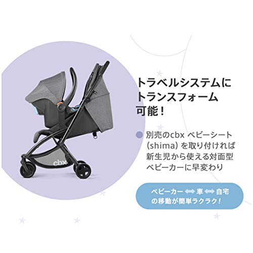 - 生後1ヶ月から使用できる背面タイプのコンパクトA型ベビーカー。別売のcbx shima(ベビーシート)も取り付けられるトラベルシステム 対応ベビーカー。