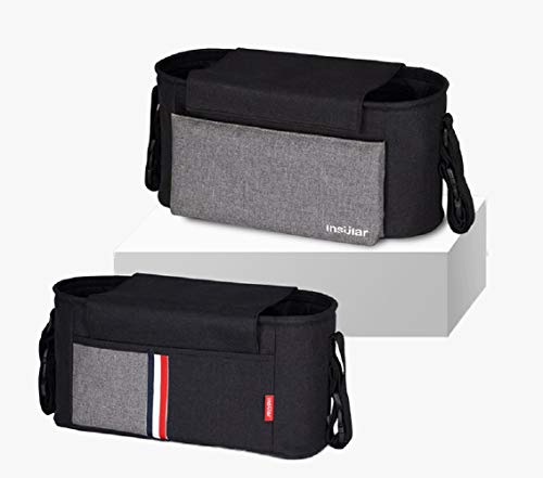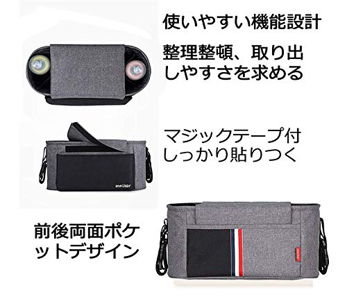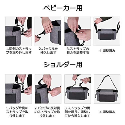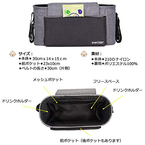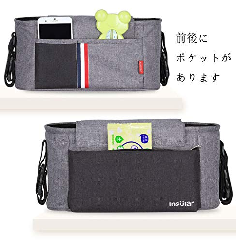 Cyc ベビーカー用バッグ 多機能バック ベビーカーポーチ ドリンクホルダー 取り外し簡単 大容量 フック2個セット付き ブラック