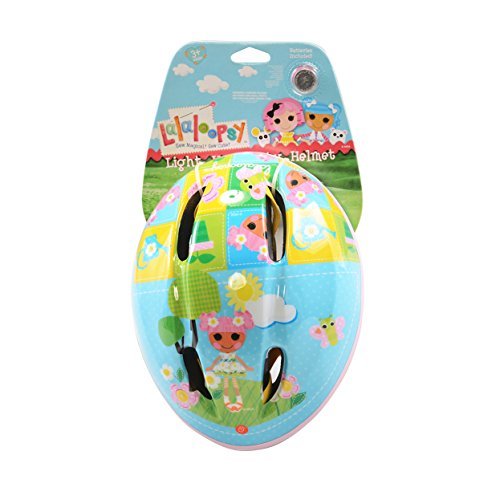 Ride around with safety and style with this lalaloopsy child size helmet with Flashing lights. Press the button on the helmet and you will see the helmet light up. Great protection for all you lalallopsy fans.