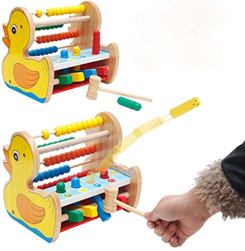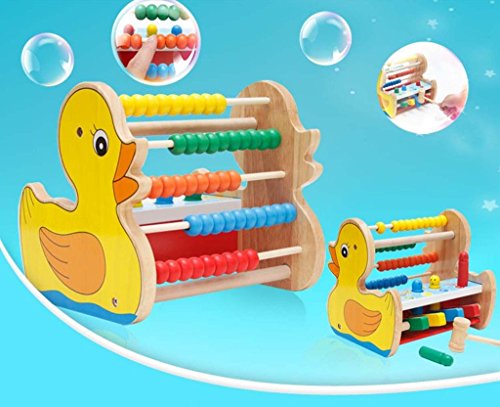 出産祝い 木のおもちゃ アヒル そろばん ペグをたたく レインボー ビーズ 幼児 知育玩具 誕生日プレゼント
