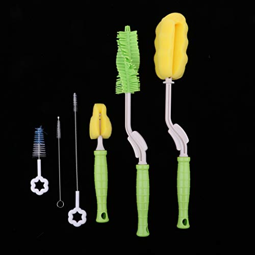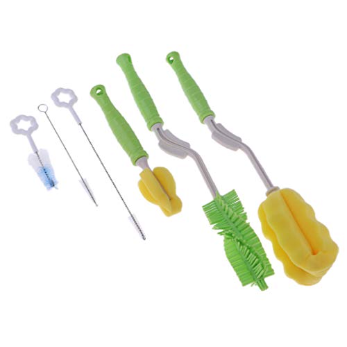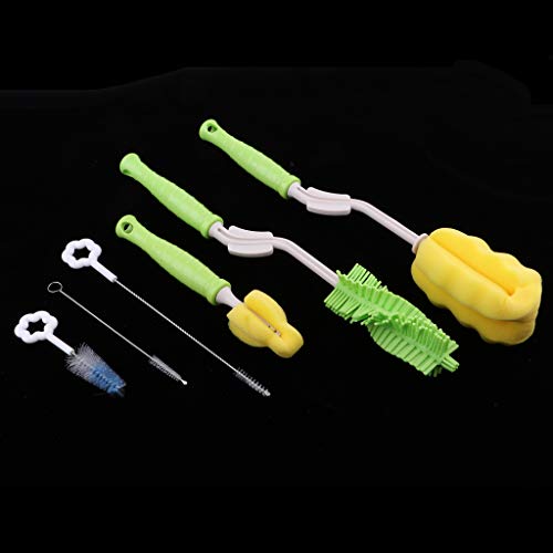 D DOLITY 全3色 哺乳びん洗浄器具 哺乳瓶ブラシセット ボトルブラシ 哺乳瓶クリップ 6点セット - 緑