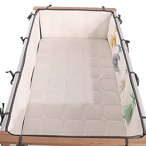 通気性コットン ベビーベッド ライナーは最初と最高. ライナーを保持制限気流のリスクなしベビーベッドの中に安全にあなたの小さな一の手足.それは軽量から成って, 呼吸を通じて 100% コットンと多孔性マイクロファイバー記入し、ベビーベッド スタイルおよびサイズのさまざまな適合.