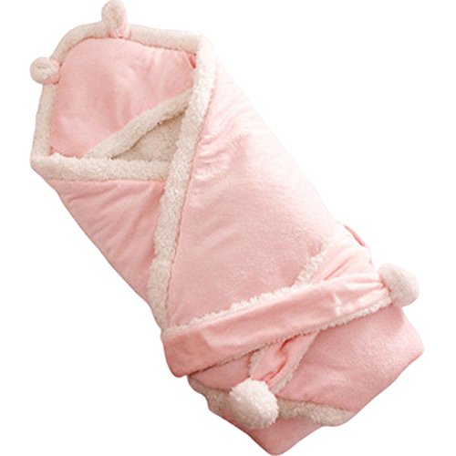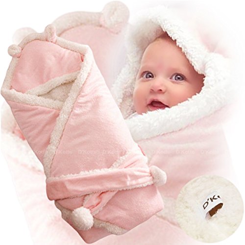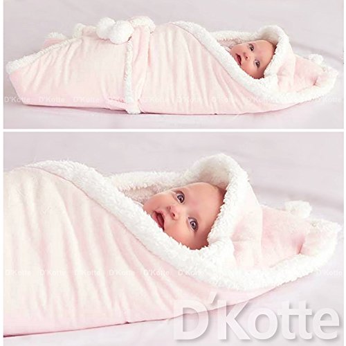 (ディーコッテ) D'Kotte ベビー ふわふわ ボア フリース 耳付き フード おくるみ 肉厚 モコモコ あったか 素材 赤ちゃん ベルト 付き アフガン ブランケット スリーパー 寝かしつけ お出かけ 出産祝い (ピンク)