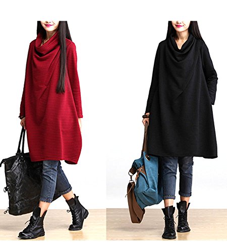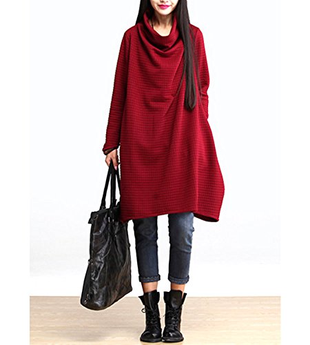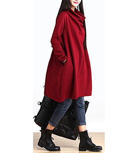 (ディーコッテ) D'Kotte レディース 長袖 ワンピース Aライン オフタートルネック 151006-6(レッド-l)