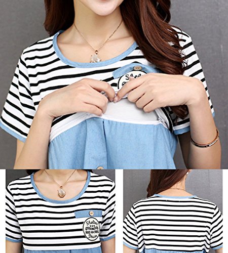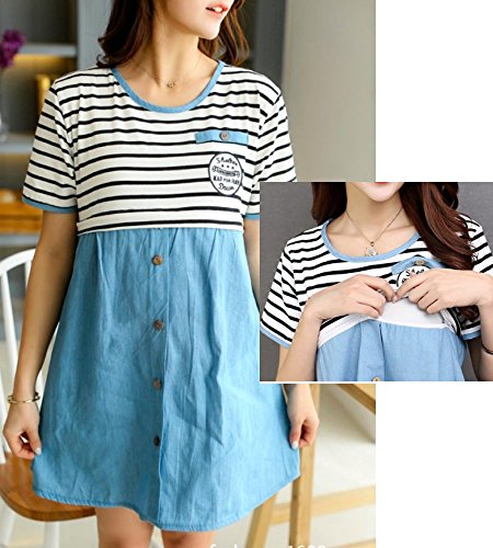 (ディーコッテ) D'Kotte マタニティ 授乳口付き 半袖 ボーダー チュニック ワンピース シャツ 産前 産後 160411-46(-free)