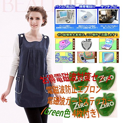 電磁波 カット 防止 OAエプロン ブルー色 IHヒーター対応 & ゼロ磁場発生基板 ステッカー Green色 スマホ向け お得セット