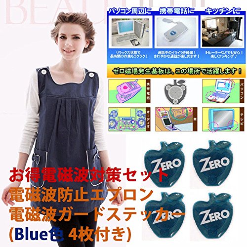 電磁波 カット 防止 OAエプロン ブルー色 IHヒーター対応 & ゼロ磁場発生基板 ステッカー Blue色 スマホ向け お得セット
