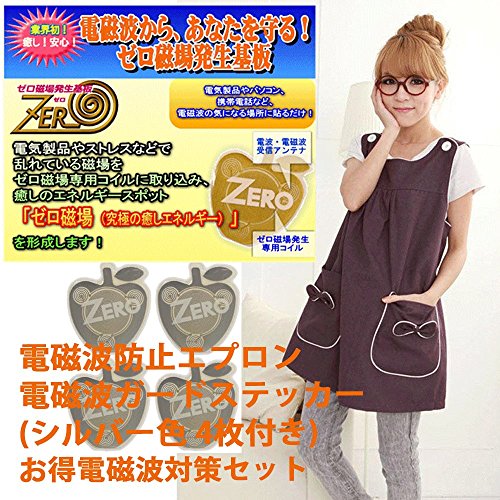 電磁波 カット 防止 OAエプロン パープル色 IHヒーター対応 & ゼロ磁場発生基板 ステッカー シルバー色 スマホ向け お得セット