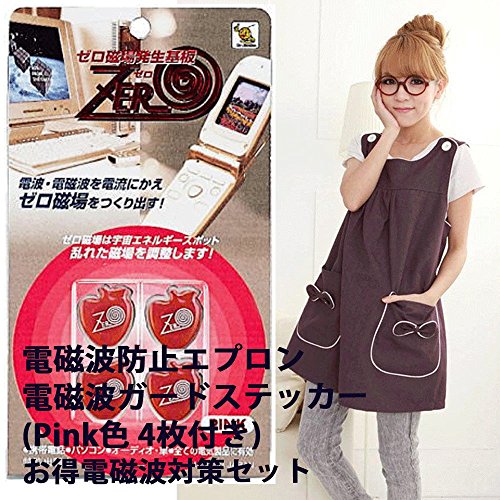 電磁波 カット 防止 OAエプロン パープル色 IHヒーター対応 & ゼロ磁場発生基板 ステッカー Pink色 スマホ向け お得セット