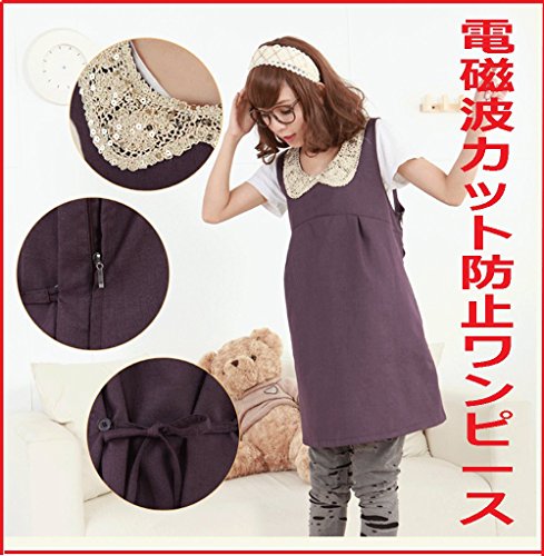★金属アレルギー対応★ 電磁波防止ワンピース 電磁波を前後左右から99.9%カット 可愛いスパンコール付き電磁波ワンピース パープル色 電磁波 電磁波防止 エプロン マタニティ 妊婦 マタニティウェア 妊婦服