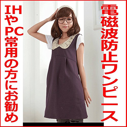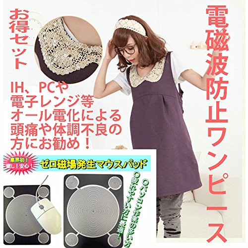 ★金属アレルギー対応★ 電磁波防止ワンピース 電磁波を前後左右から99.9%カット 可愛いスパンコール付き電磁波ワンピース パープル色 電磁波 電磁波防止 エプロン マタニティ 妊婦 マタニティウェア 妊婦服&ゼロ磁場発生マウスパット お得まとめ買いセット商品