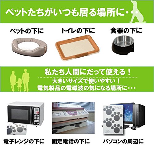 <電磁波カットエプロンの仕様> ■素材:棉38%、ポリエステル37%、電磁波防止金属繊維25%■カラー:ブルー■サイズ:フリーサイズ <お手入れ方法> ●洗濯は、電磁波防止性能保持のため、手洗いをお勧めします。中性洗剤の使用もOKです。(水温90度以下。こすり洗い・もみ洗いはしないで軽く揉み洗いをしてください) ●洗濯後は絞らずに日当りの少ない場所でそのまま干すことをお勧めします。 ※電磁波防止機能の低下および変色を防ぐため、ドライクリーニング、漂白剤および漂白剤入りの合成洗剤の使用は避けてください。アイロン掛けは中温がお勧めです。 ●保管方法は畳んで保管するより金属繊維の寿命維持の為、ハンガーにかけて保管することをおすすめします。 <ゼロ磁場発生パウマット > ◇主な用途◇ ●ペットの食事マットに ●ベットの下に敷いて ●ハウスやゲージの下に敷いて ●電子レンジの下に ●固定電話の下に ●パソコンの下に ●あらゆる電化製品の周辺に ◇ご使用上の注意◇ ●折り曲げ厳禁!!ゼロ磁場回路が切れる恐れがあります。 ●表裏面のキズ防止のため、平らな面でご使用下さい。 <ゼロ磁場発生基板の特徴と効果> ペットや大切な家族を電磁波から守ります! 電気製品周辺の電磁波環境を整えて、ココロとカラダを癒します! 私たちの生活環境は、多くの人工物や電気製品の電磁波、ストレスなどで空間の波動が大変乱れています。 ゼロ磁場発生・電磁波ガード、パウマットは、ペット周辺の空気をゼロ磁場状態に整えて、 さわやかで快適な空間をつくり、ココロとカラダを癒してくれます。 ゼロ磁場とは? ・古来より聖地やイヤシロチと呼ばれ、おいしい水が湧き出ていたり、訪れると心身が癒されたり病気が治ると 伝えられる場所と同質のエネルギー場です。 ゼロ磁場のメカニズム ゼロ磁場発生回路(一対の渦巻きコイル)が空間に飛び交う電磁波を受信して、回路に電流を流すことで、 『ゼロ磁場』と呼ばれる人を癒す働きのあるエネルギースポットを形成します。