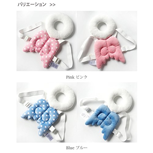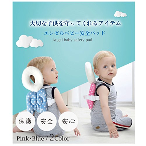 赤ちゃん クッション 羽つき 安全 パッド(ブルー)4ヶ月~15ヶ月使用/超軽量130g/エンゼル 枕/保護/防災/幼児/乳児/怪我防止/つかまり立ち/ひも調節/子どもの安全グッズ/出産祝い【DAIYO】