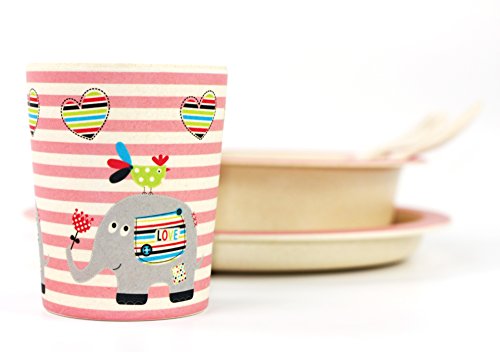- セット内容:子供の皿 (プレート)、カップ、ボウル、スプーンとフォーク各一つ。