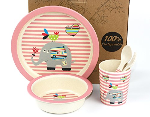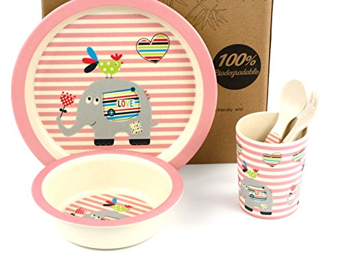 DAYOOH 子供用食器セット エコ竹繊維製品 カラフルで割れない BPA不使用 5PCS