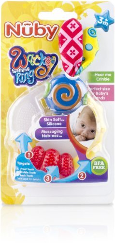 Wacky Teething ring.;Perfect size for baby;s hands.;Made of soft silicone.;Has nub-eez.;Case of 16