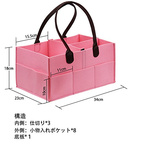 「dodokids」 フェルト製 ベビー用品収納バッグ おむつストッカー 折りたたみ式 おむつストッカー おむつ収納ケース おむつボックス おむつ オムツ 折りたたみ ボックス 収納箱 出産祝い 雑物収納 小物整理 便利 ピンク (♡仕切り×3ピンク)