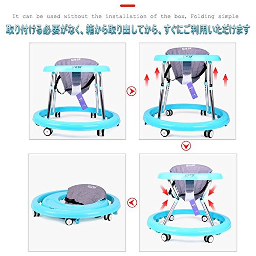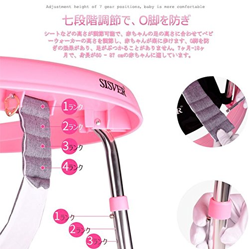 - シートなどの高さが調節可能で、赤ちゃんの足の高さに合わせてベビーウォーカーの高さを調節し、赤ちゃんが楽に歩けます。O脚を防ぎの効果があり、足がぶつかることがありません。7ヶ月-18ヶ月で、身長が60 - 87 cmの赤ちゃんに適しています