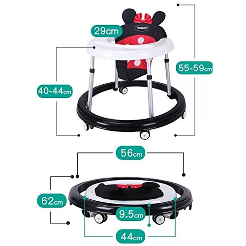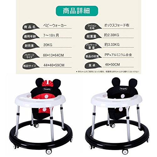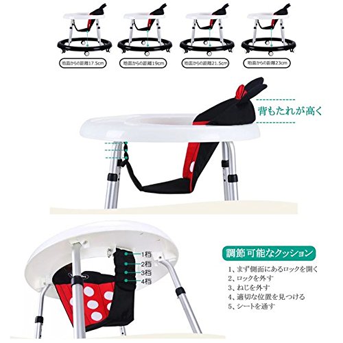 - シートなどの高さが調節可能で、赤ちゃんの足の高さに合わせてベビーウォーカーの高さを調節し、赤ちゃんが楽に歩けます。O脚を防ぎの効果があり、足がぶつかることがありません。7ヶ月-18ヶ月で、身長が60 - 87 cmの赤ちゃんに適しています
