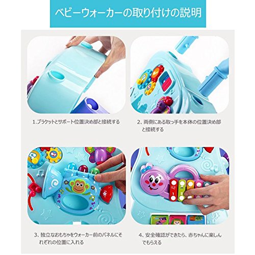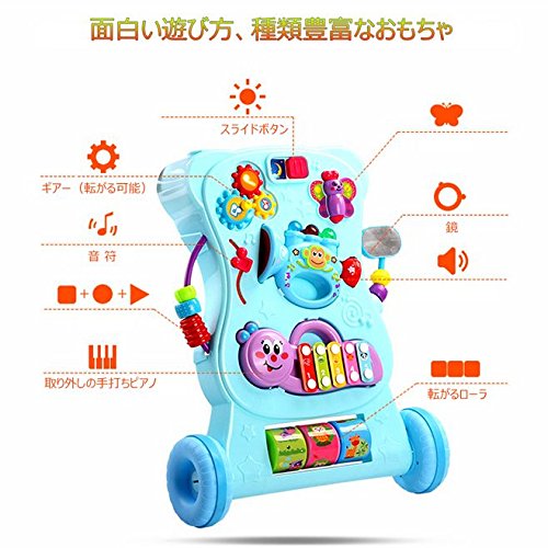 - 対象年齢: 6ヶ月~3歳、材質:ABS、PP 手押し車と知育トイ( 本、携帯、回転ダイヤル、ミラー、鍵盤、お絵描きボード ) が合体した歩行器です