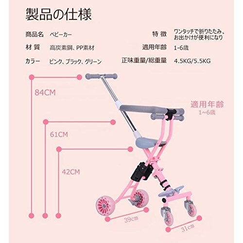 - 重量:4kg 、サイズ:[使用時]39×27×42-84cm、 折りたたみ式のベビーカーで、収納や持ち運びに便利で、車の中や飛行機にも積められます;飛行機も、車も積めます。