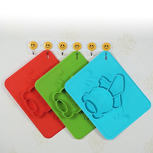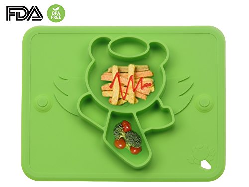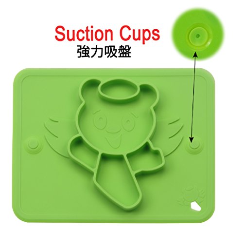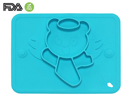 ベビー食事マット 食品グレードシリコーン プレート 超柔らかい 吸盤付き 格付け 超強吸着 滑り止め 赤ちょん 幼稚園 食器 高品質 無味無臭 FDA&BPA認証 子供用 全4色(ブルー)