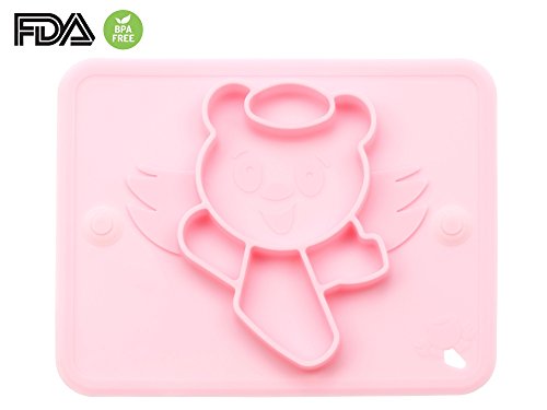 ベビー食事マット 食品グレードシリコーン プレート 超柔らかい 吸盤付き 格付け 超強吸着 滑り止め 赤ちょん 幼稚園 食器 高品質 無味無臭 FDA&BPA認証 子供用 全4色(ピンク)