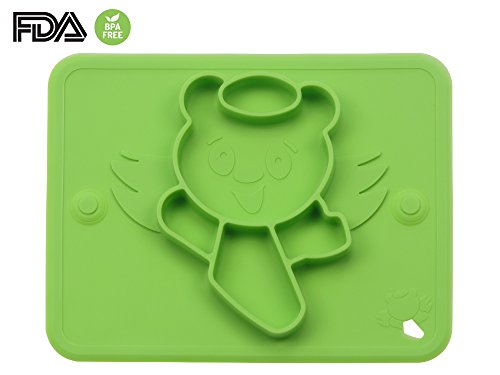 ベビー食事マット 食品グレードシリコーン プレート 超柔らかい 吸盤付き 格付け 超強吸着 滑り止め 赤ちょん 幼稚園 食器 高品質 無味無臭 FDA&BPA認証 子供用 全4色( グリーン)