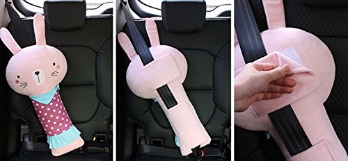 DEBON シートベルトカバー クッション コットン ショルダーパッド キッズ シートベルト枕 子供 車 カバー レディース 可愛い ぬいぐるみ (ウサギ)