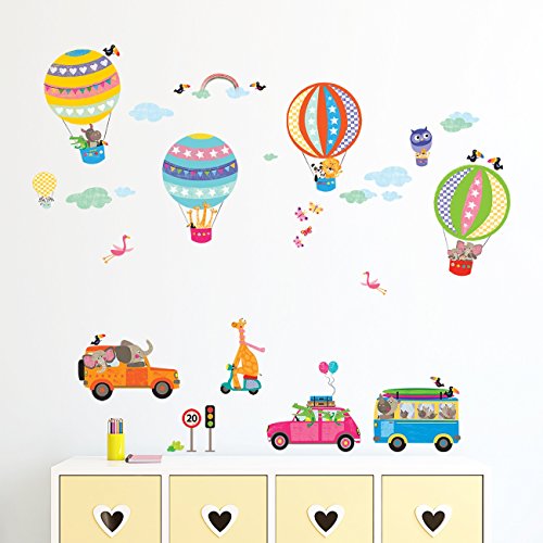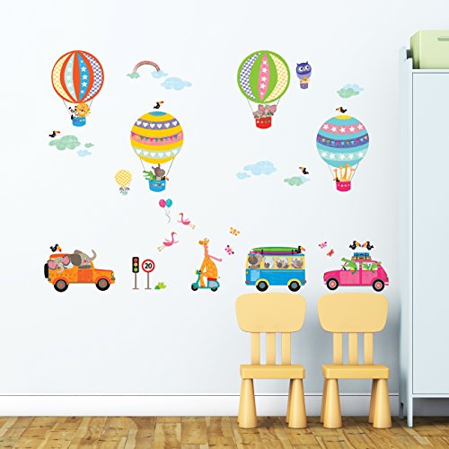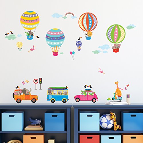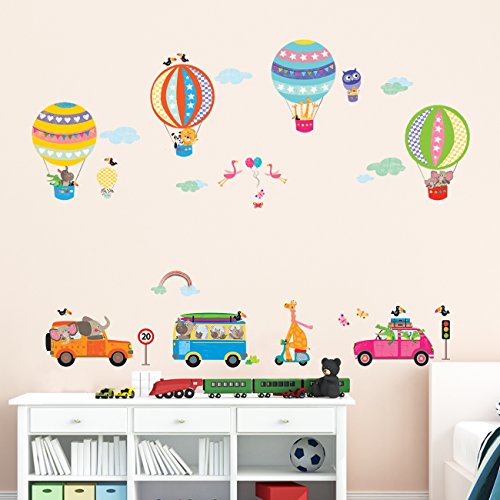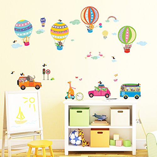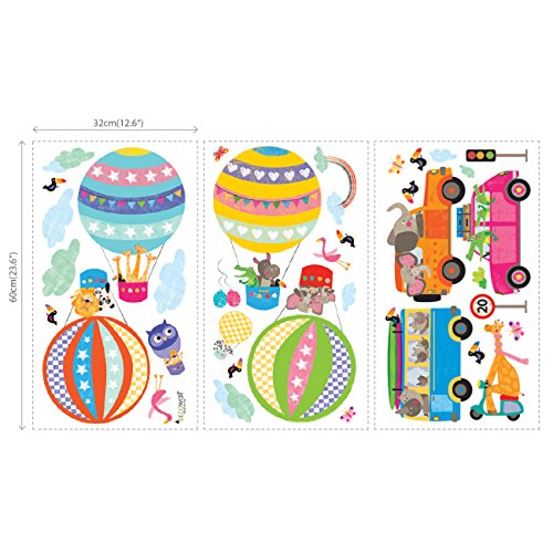 DECOWALL 動物輸送と車 動物熱気球 ウォール ステッカー デコ DAT-1710