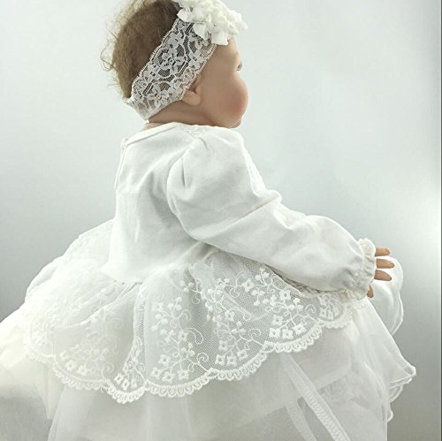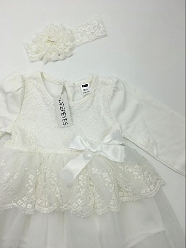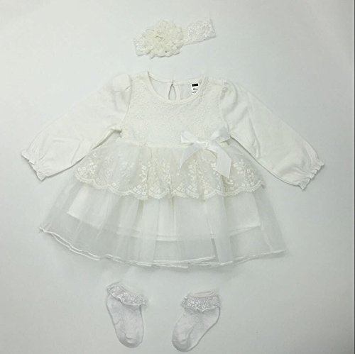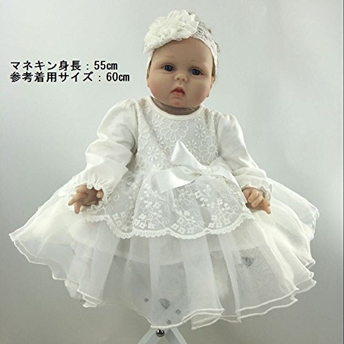 (ディープアイズ) DEEPEYES ベビー 長袖 フォーマル ドレス ヘアバンド 靴下 3点セット ホワイト 60cm