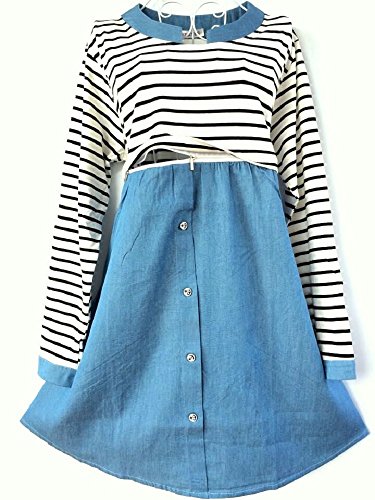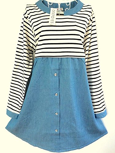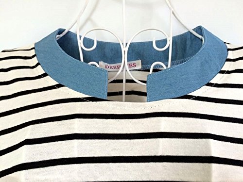 DEEPEYES マタニティ ウェア 授乳服 ワンピース チュニック ボーダー × デニム 記念 撮影 用 フォト シール 5種類 セット フリー サイズ 半袖 or 長袖 (長袖×マタニティ フォトシール 5種類)