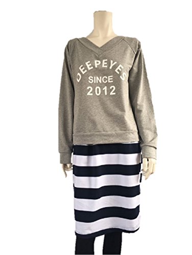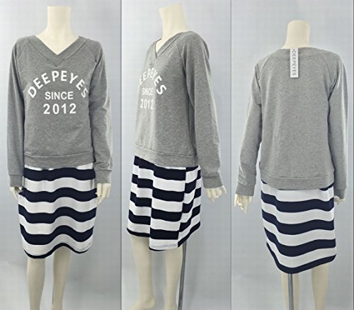 (ディープアイズ) DEEPEYES マタニティ ウェア 授乳服 Vネック ボーダー ドッキング ワンピース チュニック 授乳口付き Lサイズ