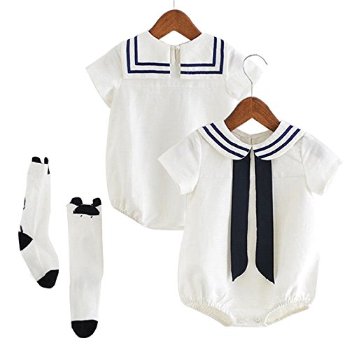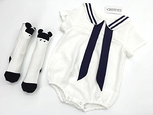 (ディープアイズ) DEEPEYES ベビー服 ロンパース 半袖 セーラー マリン カバーオール 水兵さん ベビー キッズ 赤ちゃん 女の子 男の子 子供服 夏 (Sサイズ)