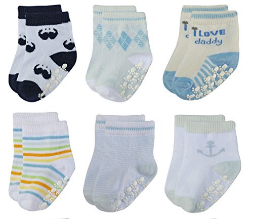 デラックスコットンクルーソックスwithグリップfor Baby Boys カラー: マルチカラー