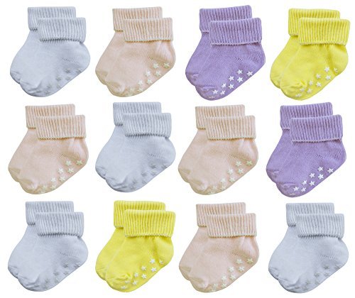 デラックスアンチノンスキッドスリップソリッドプレーンSocks withグリップfor Baby Toddler Girls