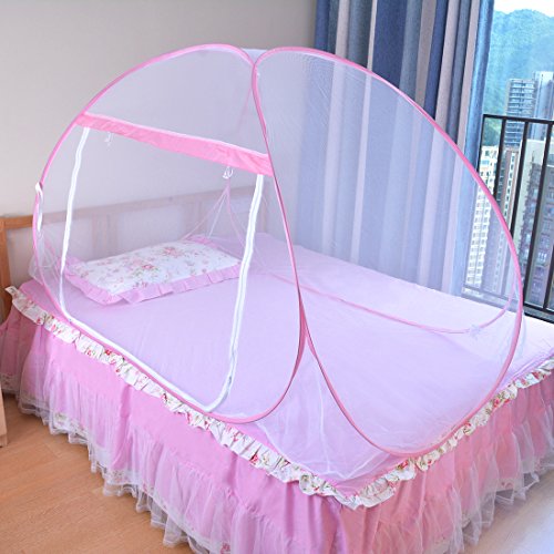 Dewel 蚊帳(かや) 虫除け 蚊よけ 密度が高い 1ドアタイプ 持ち運べる 収納便利 ワンタッチ・折りたたみ式・底付き 選べる2色 (キング 180 * 200 * 150cm, ピンク )