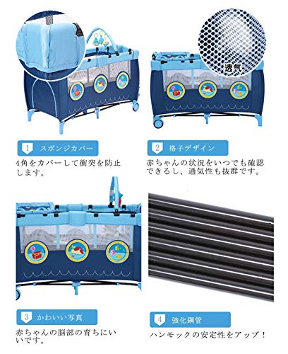 - ベッドの上でおむつ交換が付いているのがとても便利です。「オムツや赤ちゃん用のおもちゃ、タオルなどを収納できるポケット付き」