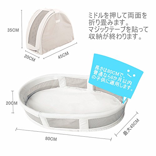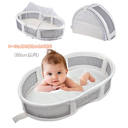 DEWELベビーベッド 折り畳み ベッドインベッド 添い寝ベッド 蚊帳付き 収納便利 長さ80CM ( 0~12ヶ月の赤ちゃんに対応)