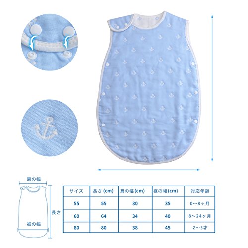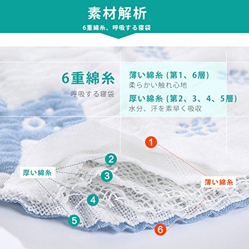 ベビー スリーパー 6重ガーゼ 天然コットン100% 寝冷え防止 寝袋 赤ちゃん 出産祝い(新生児~3歳頃向け) (2, M)