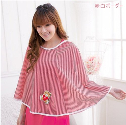 DEZAR 360 度 授乳 ケープ ポンチョ (紅白ボーダー)