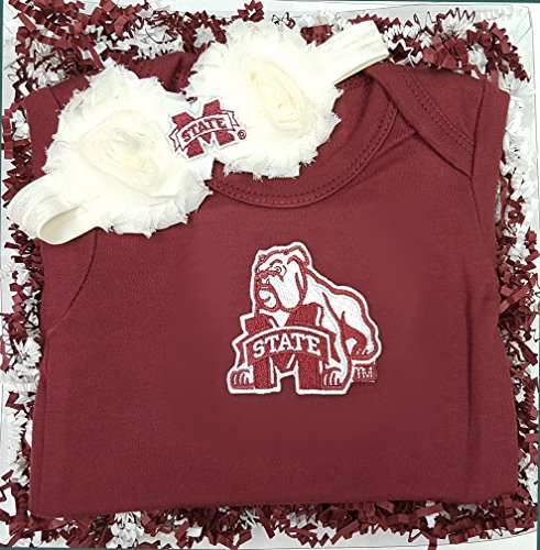 あなたのミシシッピ州ブルドッグファンは愛らしいフラワーリボンカチューシャヘアみすぼらしいを素敵にに見え、ワンジーです!