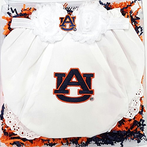 オーバーンタイガースファンは着用している愛らしい見てしまいフラワーヘアリボンカチューシャとおむつカバー。