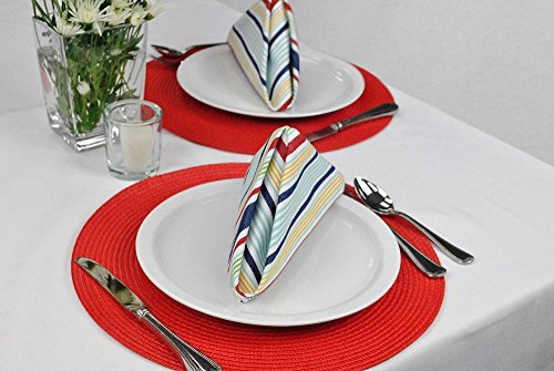 Color:Tango Red DII round braided/woven, indoor/outdoor placemat, set of 6 are perfect for any occasion. These beautifully woven placemats give a contemporary look to any tabletop. These placemats are timeless and pair well with modern tableware as well as with more traditional tableware. DII round placemats are excellent for protecting your table from stains and scratches, extending the life of your table.To view more of our products visit amazon.com/dii.