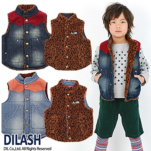 (ディラッシュ) DILASH 秋'14 デニム&ヒョウ柄ボアリバーシブルベスト 80 ネイビーブルー