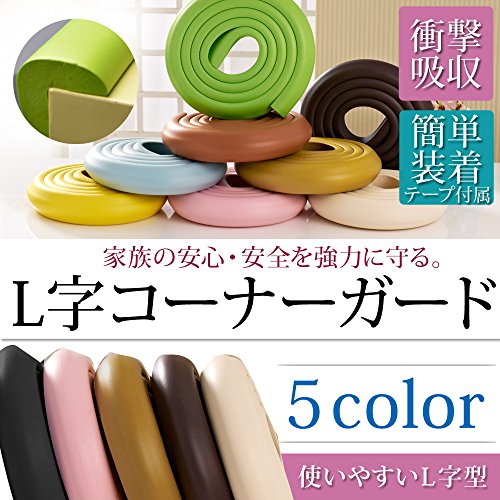 【乳幼児への安全対策】ベビー コーナーガード L型 タイプ 赤ちゃん ケガ防止 クッション 全長2メートル 自由自在 かんたん設置 両面テープ付き 【DISE オリジナルセット】 (ベージュ)