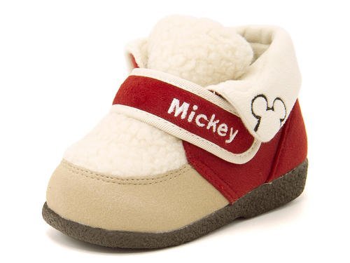 モコモコのボアがウォーミングなベビーブーツ☆ 折り返し部分とヒール部分にミッキーをあしらった可愛らしいデザイン♪ ライニングや中敷は柔らかなフリース素材で、足当たりが良く、足元をふんわりと暖かく包みます◎ お子様でも簡単に脱ぎ履きが出来る1本ストラップ仕様になっています。※展開サイズ:キッズ