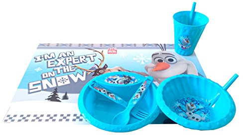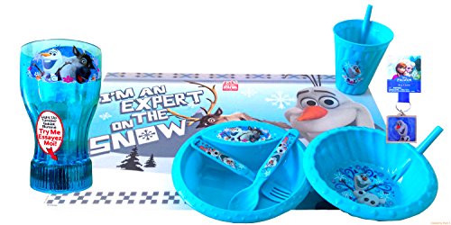 Disney Frozen Olaf Dinnerware Mealtime Set 8 Piece Includesマット、Light Up Tumblrカップ、ボウル、Sippieボウル、Built on Sippie Cupフォーク、スプーン、、オラフキーチェーン